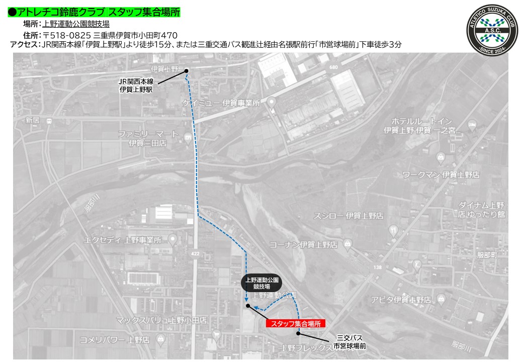 上野運動公園競技場 (三重県伊賀市) →JR「伊賀上野駅」より徒歩約15分、または 三重交通バス観進辻経由名張駅前行「市営球場前」下車徒歩3分 |