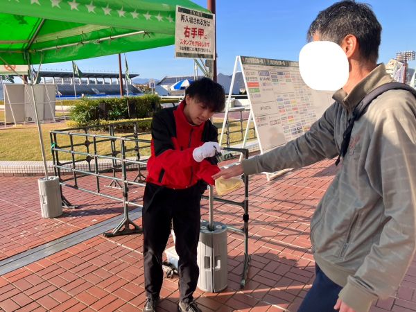 スポーツティーチングクラブのお仕事、試合前の列整理や試合中のチケットチェックなどが目立つと思うのですが、実は準備、撤去もみんなで行っています!