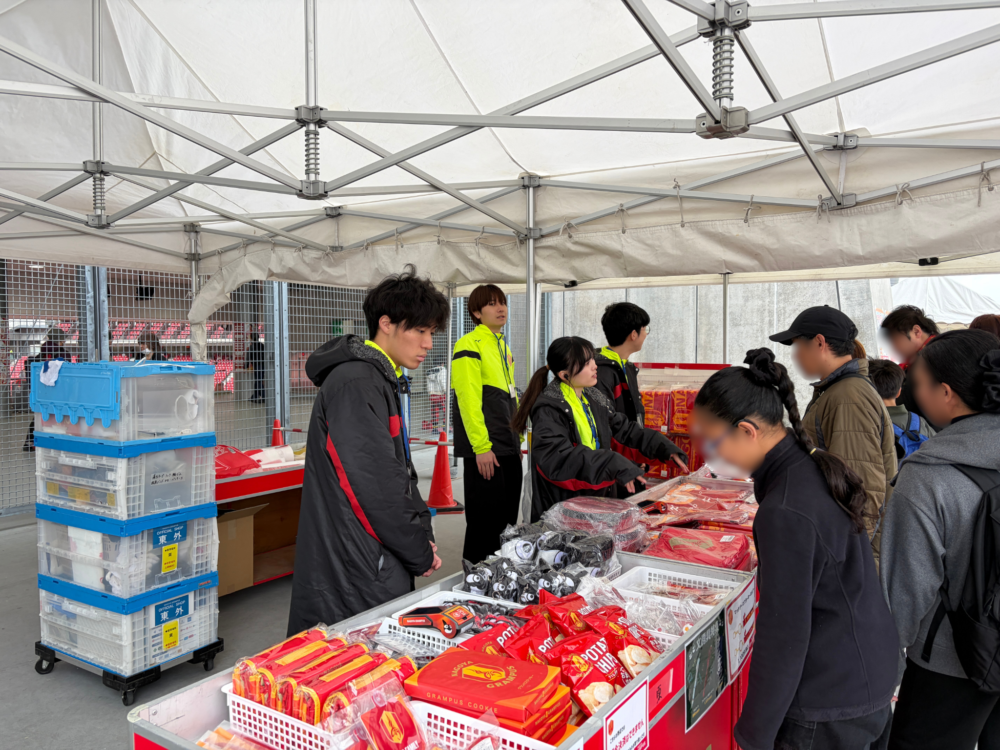 グッズ販売に関わるスタッフも、天候の影響を受けながら大活躍。お客様対応や商品の受け渡しなどを丁寧に行い、売り場をしっかりと支えてくれていました。