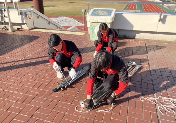 スポーツティーチングクラブのお仕事、試合前の列整理や試合中のチケットチェックなどが目立つと思うのですが、実は準備、撤去もみんなで行っています!