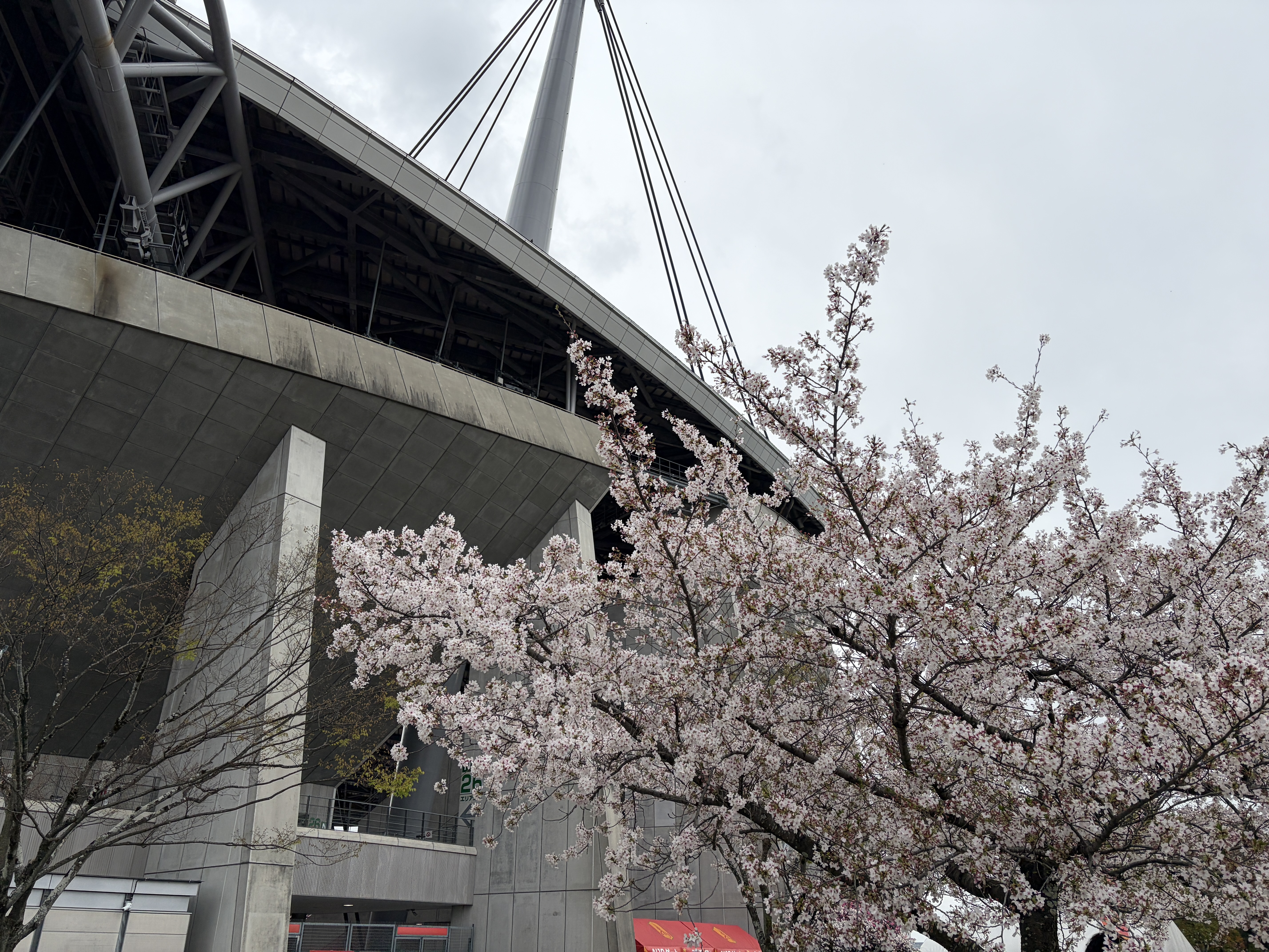 この日はあいにくの雨…。風も強い中での開催となりましたが、スタジアム周辺では桜が満開を迎えており、春らしさも感じられる一日となりました❀
